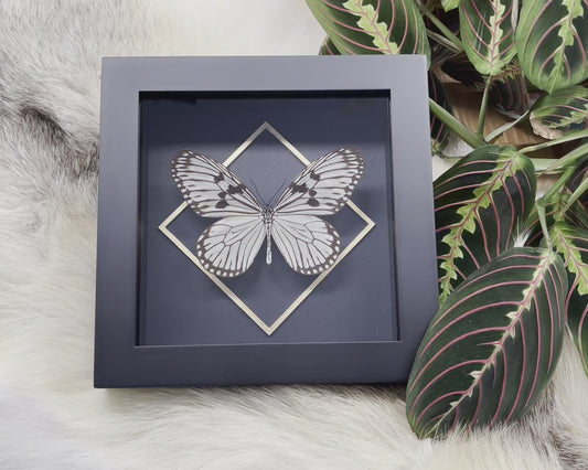 Deluxe framed Idea durvillei butterfly with golden line accent