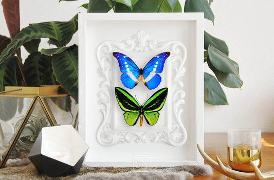 Deluxe framed Morpho helena and Northern birdwing butterfly