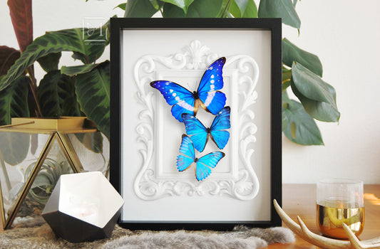 Deluxe framed Morpho butterflies