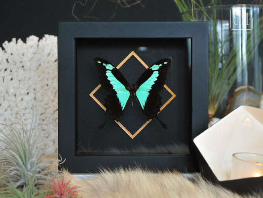 Deluxe golden line collection-Blue emperor butterfly framed art