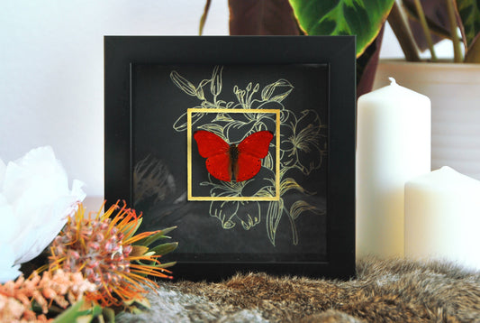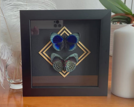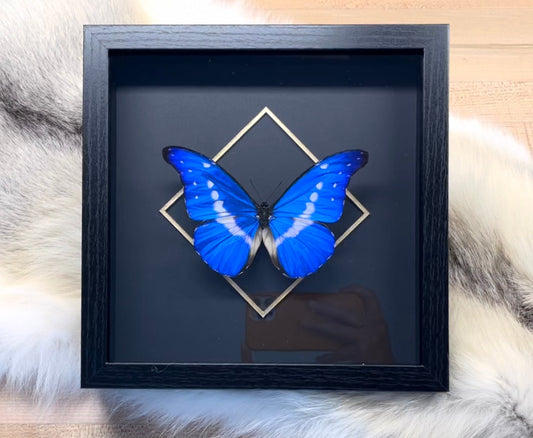 Deluxe framed Idea durvillei butterfly with golden line accent