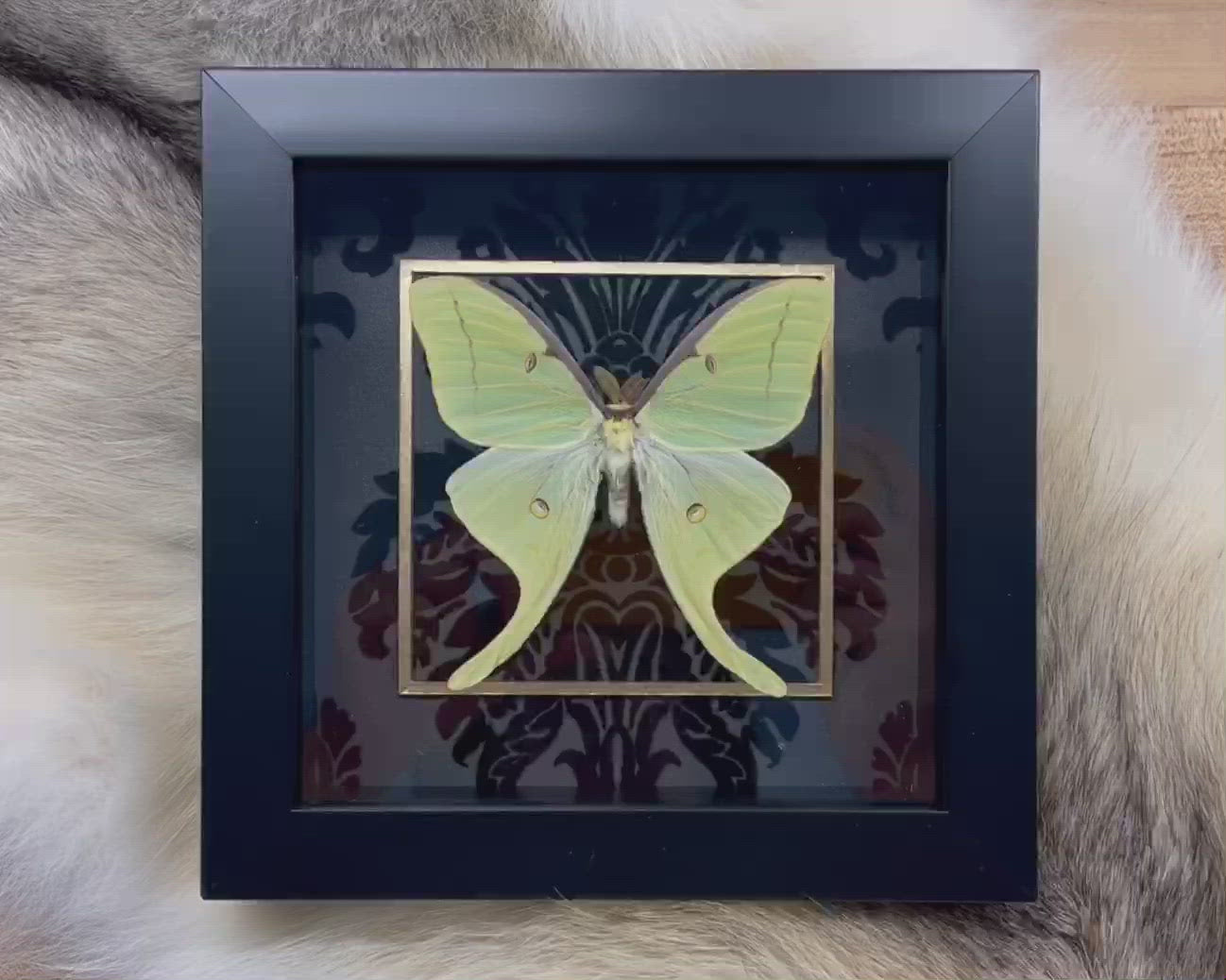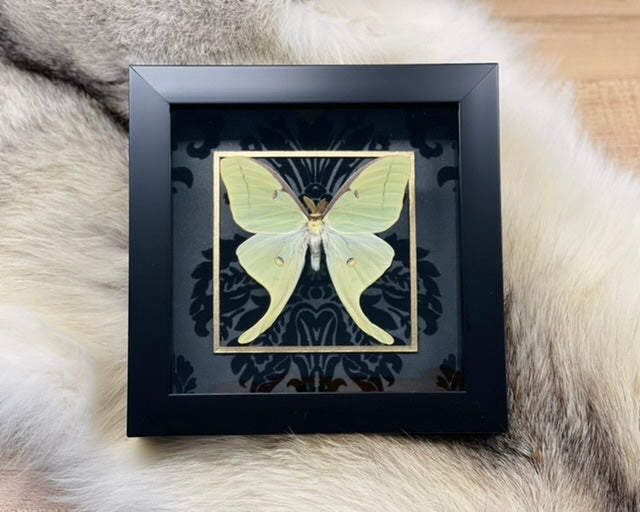 Deluxe framed Luna Moth with golden line accent on black velvet