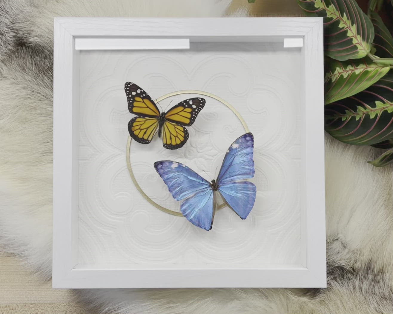 Blue and red butterflies deluxe framed art