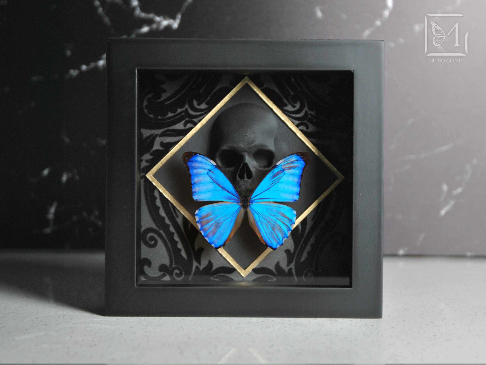 Materials: Clear glass top + solid wood frame + 3D printed PLA skull