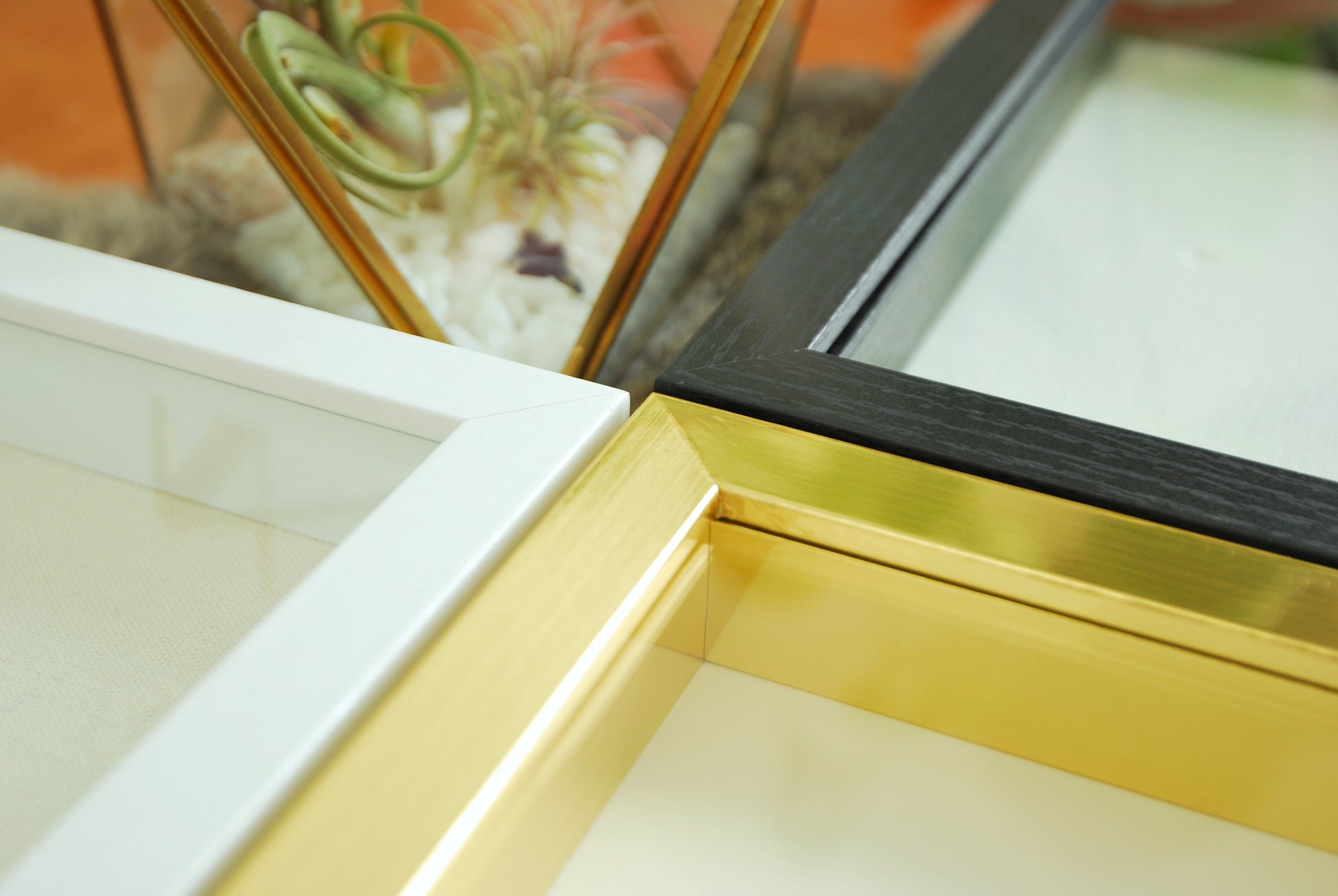 Frame materials: Clear glass top + Textured wood veneer frame