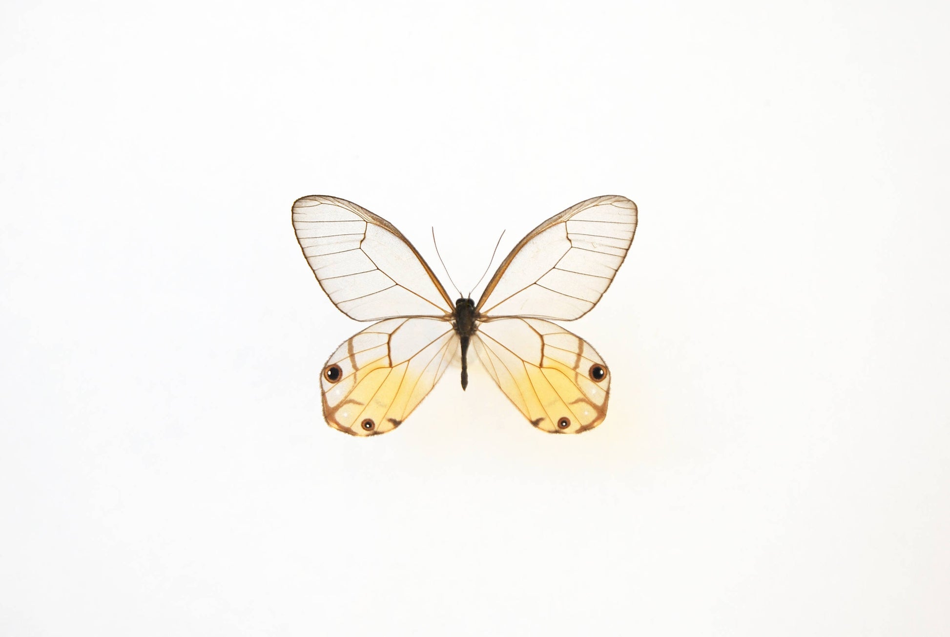 Framed golden glass wing butterfly