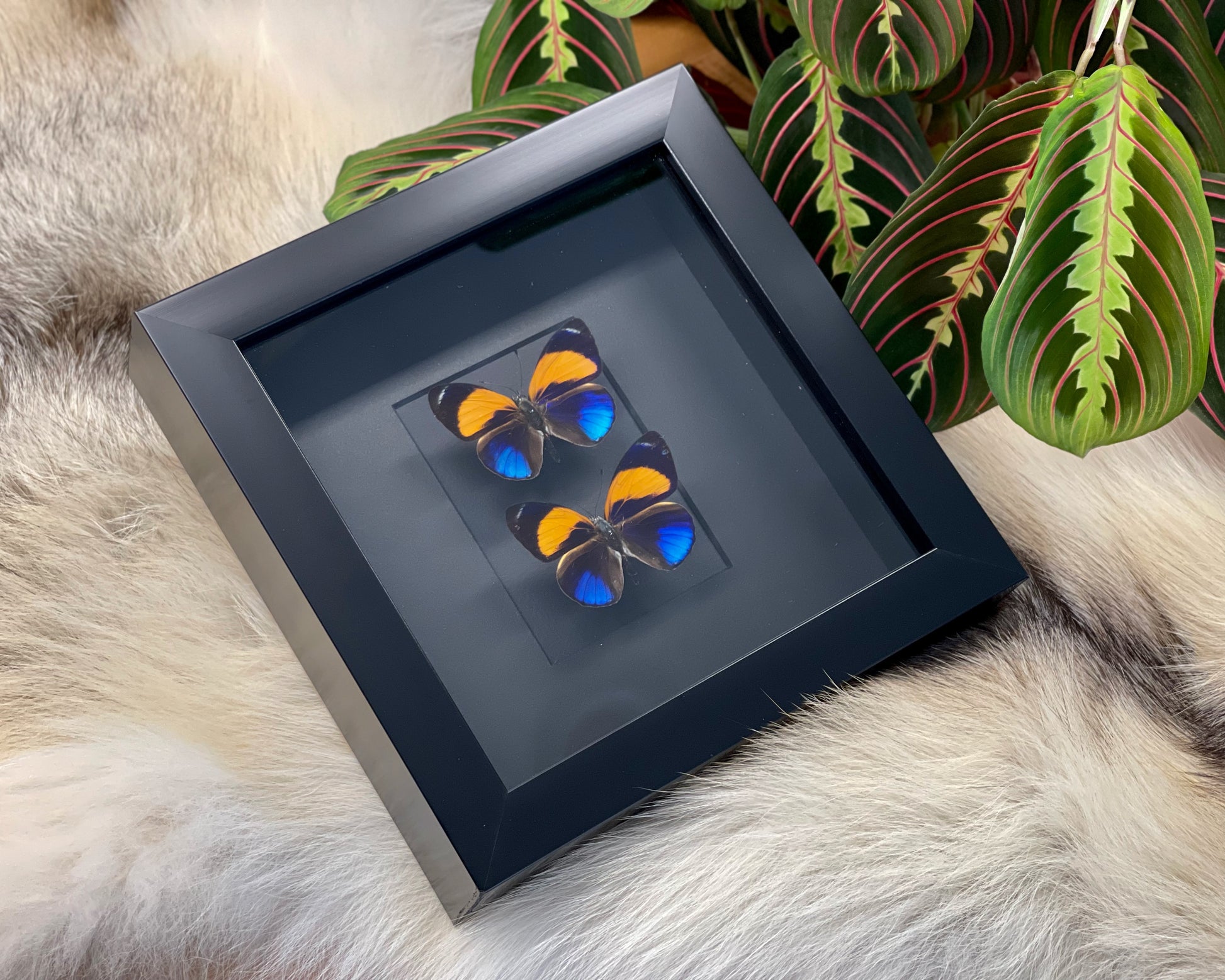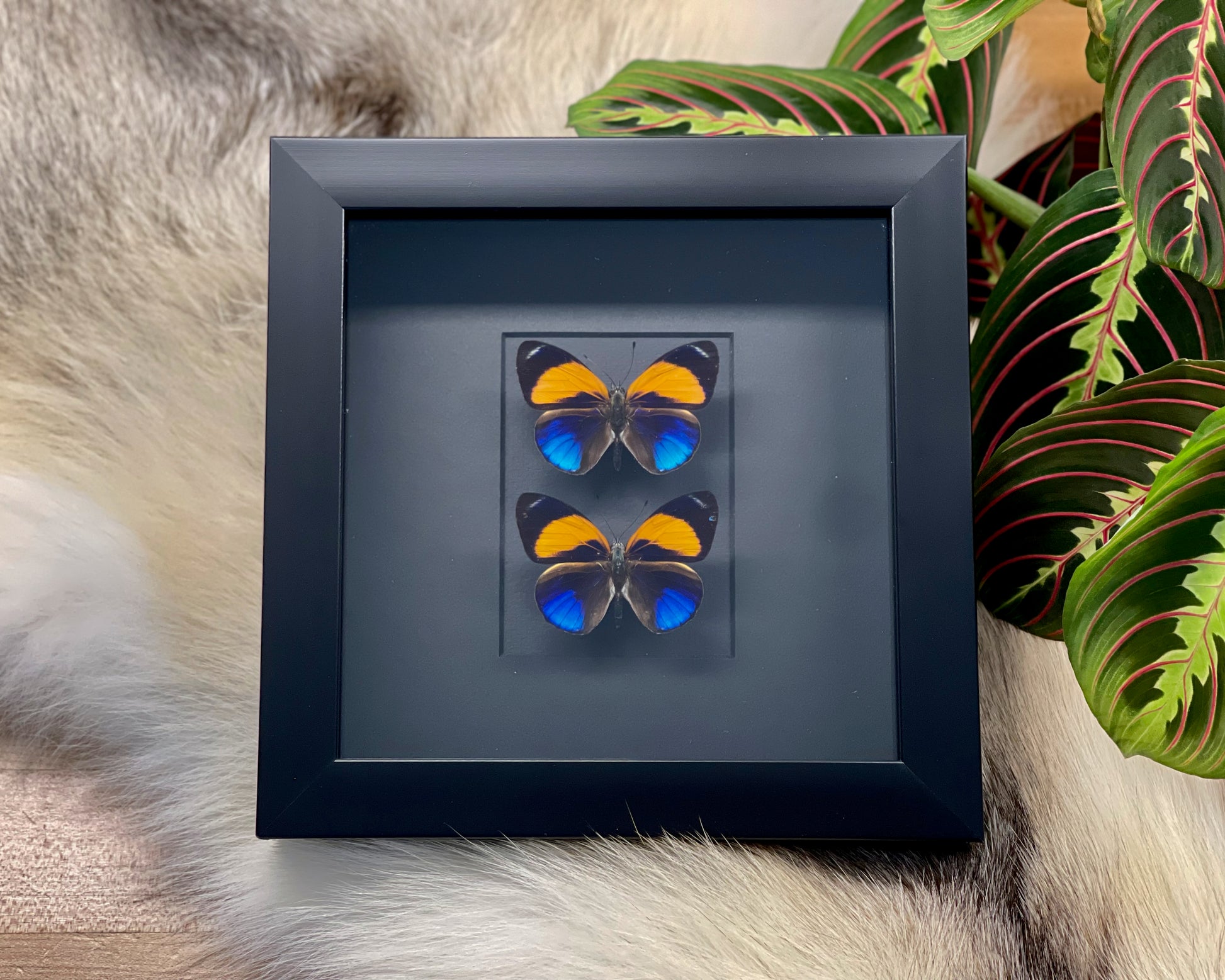 Frame: Inside 6"x 6" shadow box. 1¾" deep. Outside measured 7"x7". Can be hung on the wall or stand on its own.