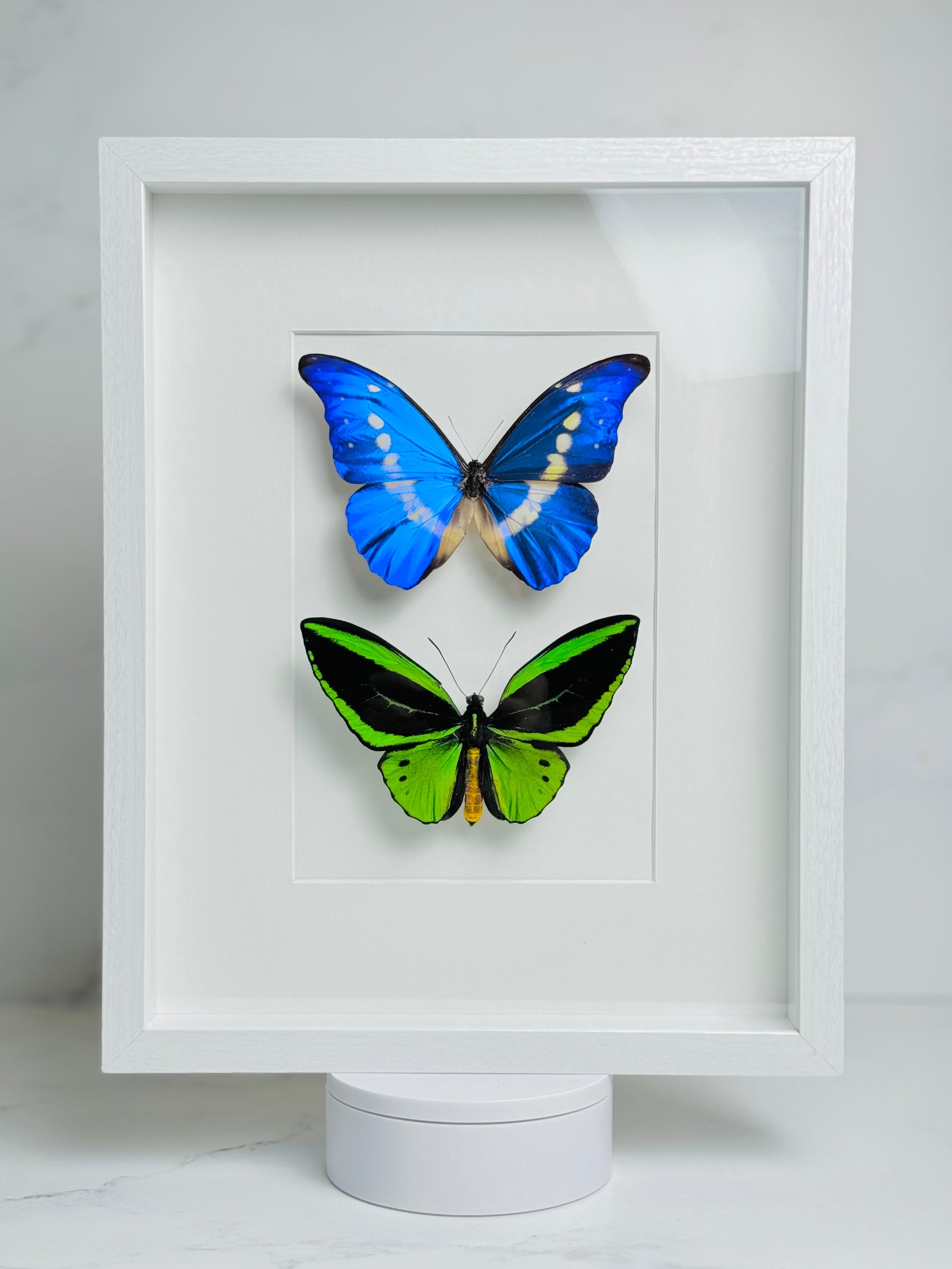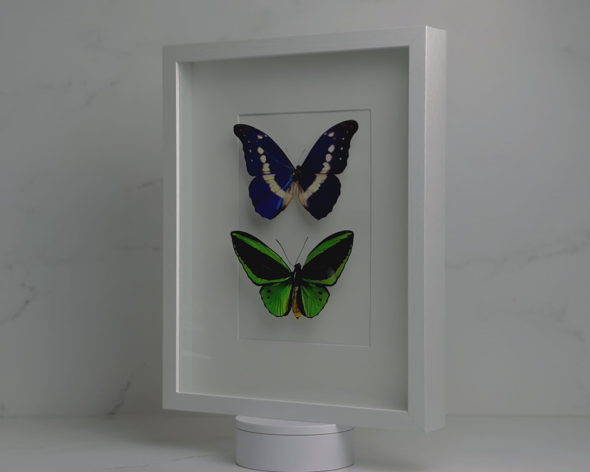 Species: Morpho helena (top) + O priamus poseidon (bottom)